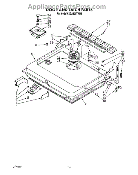 This factory screw secures appliance components to their mounting points. Replace missing, worn, or stripped hardware to restore a tight fit, proper alignment, and quieter operation across the affected assembly.