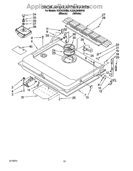 This factory screw secures appliance components to their mounting points. Replace missing, worn, or stripped hardware to restore a tight fit, proper alignment, and quieter operation across the affected assembly.