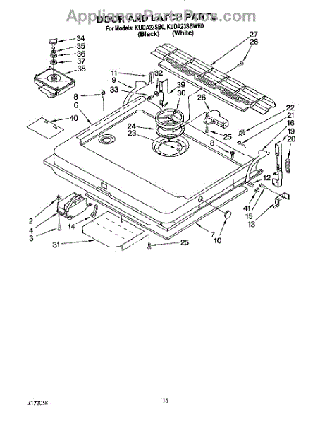This factory screw secures appliance components to their mounting points. Replace missing, worn, or stripped hardware to restore a tight fit, proper alignment, and quieter operation across the affected assembly.