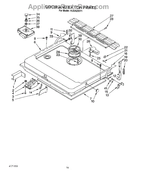 This factory screw secures appliance components to their mounting points. Replace missing, worn, or stripped hardware to restore a tight fit, proper alignment, and quieter operation across the affected assembly.