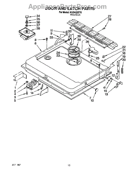 This factory screw secures appliance components to their mounting points. Replace missing, worn, or stripped hardware to restore a tight fit, proper alignment, and quieter operation across the affected assembly.