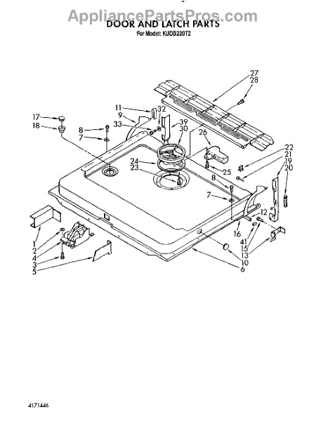 This factory screw secures appliance components to their mounting points. Replace missing, worn, or stripped hardware to restore a tight fit, proper alignment, and quieter operation across the affected assembly.