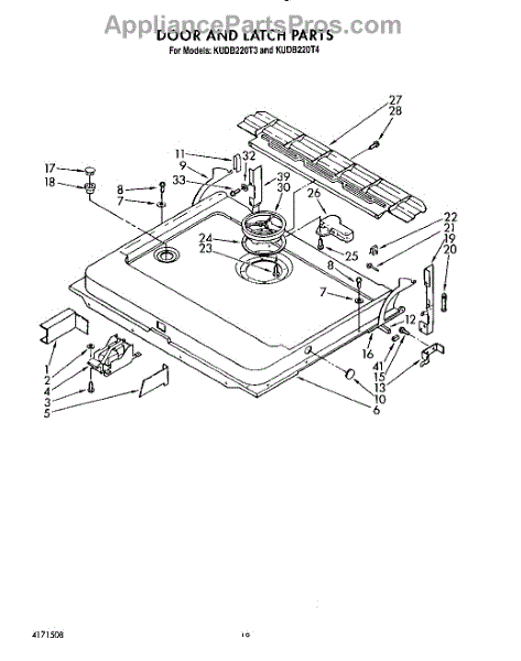 Parts for Kitchenaid KUDB220T3: 13 - Door And Latch Parts