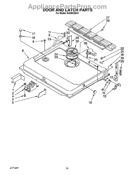 This factory screw secures appliance components to their mounting points. Replace missing, worn, or stripped hardware to restore a tight fit, proper alignment, and quieter operation across the affected assembly.