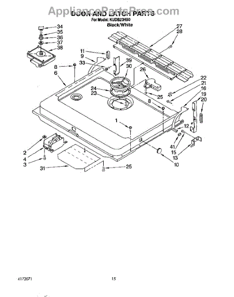 Parts for Kitchenaid KUDB23HB0: 12 - Door And Latch Parts