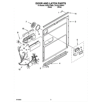 Parts for Kitchenaid KUDC01TMWH1: 03 - Door And Latch Parts