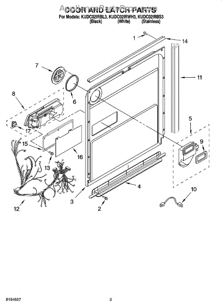Parts for Kitchenaid KUDC02IRWH3: 03 - Door And Latch Parts