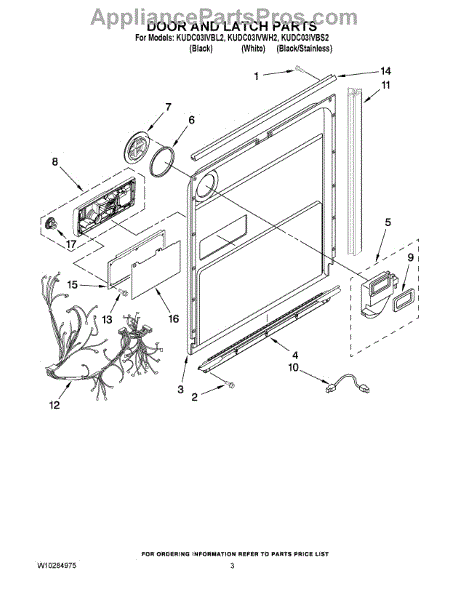 Parts for Kitchenaid KUDC03IVWH2: 03 - Door And Latch Parts