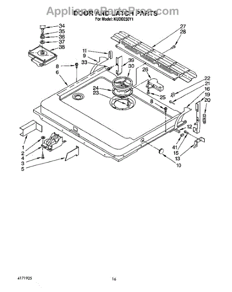 Parts for Kitchenaid KUDD230Y1: 12 - Door And Latch Parts
