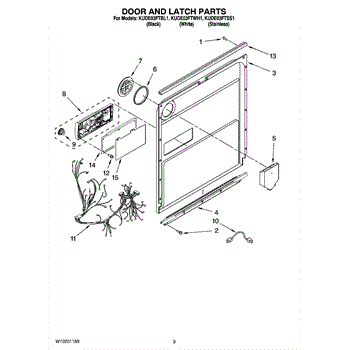 Parts for Kitchenaid KUDE03FTWH1: 03 - Door And Latch Parts