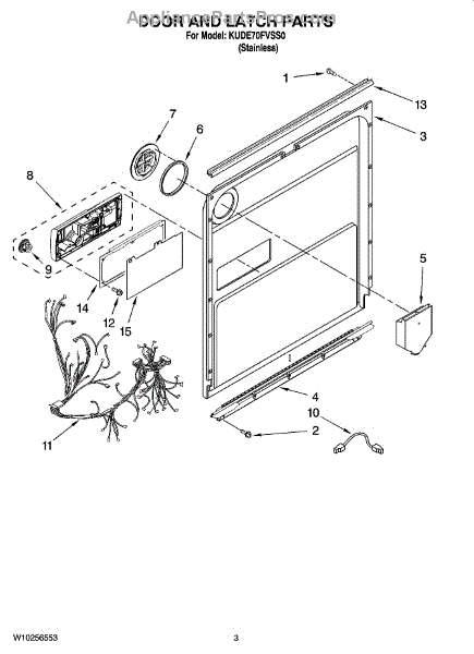 Parts for Kitchenaid KUDE70FVSS0: 03 - Door And Latch Parts