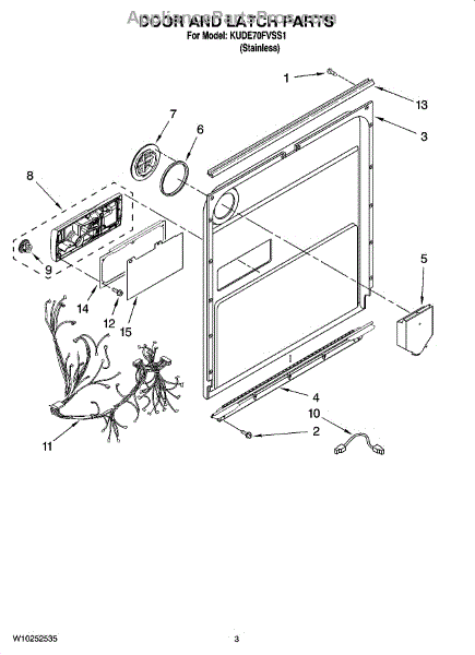 Parts for Kitchenaid KUDE70FVSS1: 03 - Door And Latch Parts