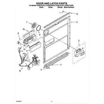 Parts for Kitchenaid KUDI01DLBL0: 03 - Door And Latch Parts