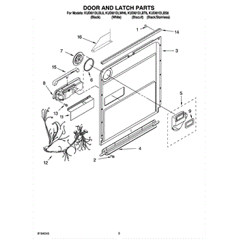 Parts for Kitchenaid KUDI01DLWH6: 03 - Door And Latch Parts