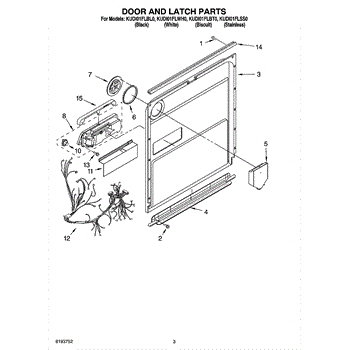 Parts for Kitchenaid KUDI01FLBT0: 03 - Door And Latch Parts