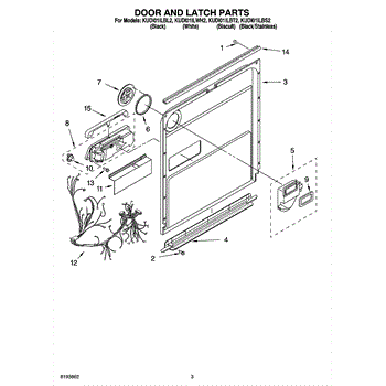 Parts for Kitchenaid KUDI01ILWH2: 03 - Door And Latch Parts