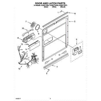 Parts for Kitchenaid KUDI01TJWH0: 03 - Door And Latch Parts