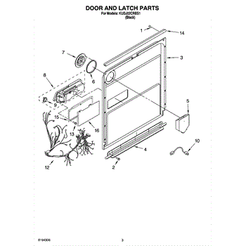 Parts for Kitchenaid KUDJ02CRBS1: 03 - Door And Latch Parts