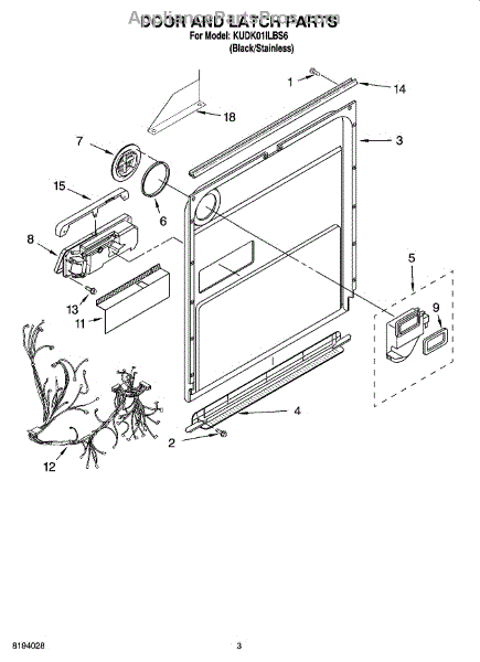 Parts for Kitchenaid KUDK01ILBS6: 03 - Door And Latch Parts