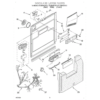 This door latch assembly secures the appliance door and engages the door switch so cycles start and run normally. It replaces a worn or broken latch to restore reliable door closure and operation. What it does