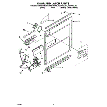 Parts for Kitchenaid KUDP01DLBL5: 03 - Door And Latch Parts