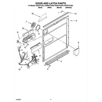 Parts for Kitchenaid KUDP01FLBL3: 03 - Door And Latch Parts
