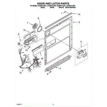 Parts for Kitchenaid KUDP01ILWH1: 03 - Door And Latch Parts