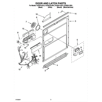 Parts for Kitchenaid KUDP01ILWH3: 03 - Door And Latch Parts