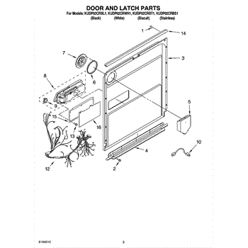 Parts for Kitchenaid KUDP02CRBS1: 03 - Door And Latch Parts