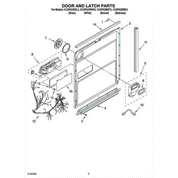 Parts for Kitchenaid KUDP02IRWH3: 03 - Door And Latch Parts