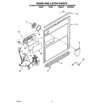 Parts for Kitchenaid KUDP02SRBT0: 03 - Door And Latch Parts