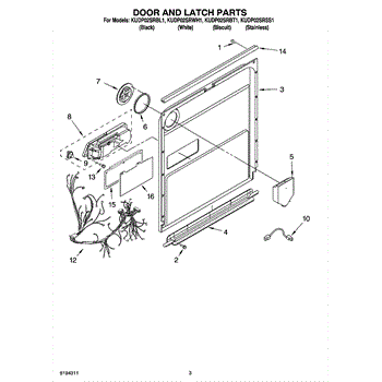 Parts for Kitchenaid KUDP02SRWH1: 03 - Door And Latch Parts