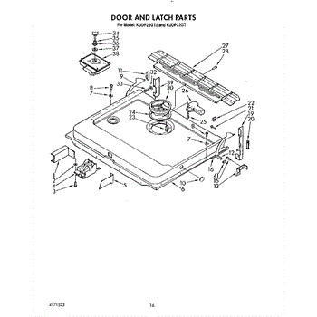 Parts for Kitchenaid KUDP22GT0: 13 - Door And Latch Parts