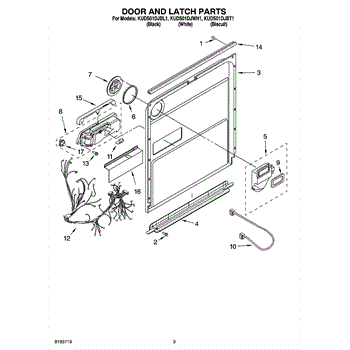 Parts for Kitchenaid KUDS01DJBT1: 03 - Door And Latch Parts