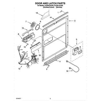 Parts for Kitchenaid KUDS01DLSS6: 03 - Door And Latch Parts