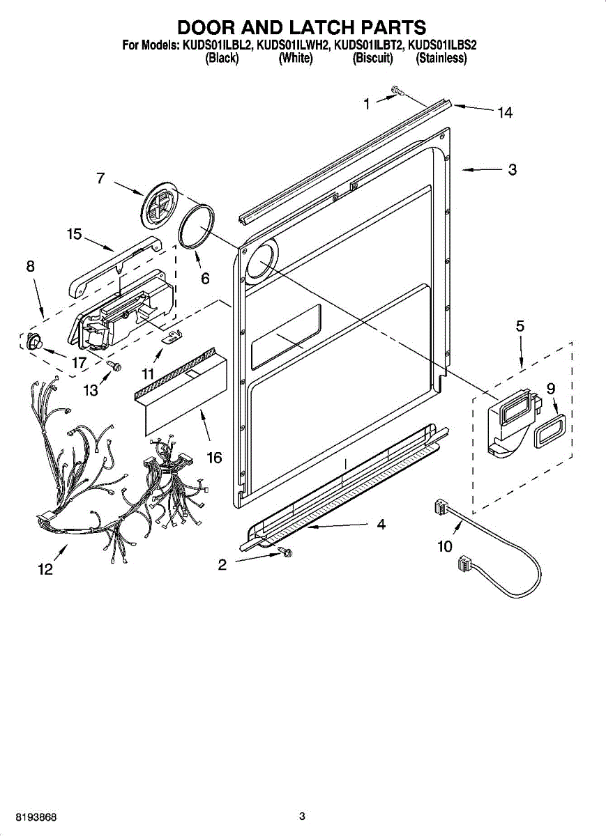 Seals the front edge of your dishwasher door to contain water and steam. Replace when you notice leaks or drips at the door opening. Confirm fit.