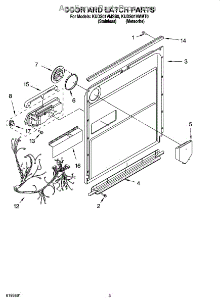 Parts for Kitchenaid KUDS01VMMT0: 03 - Door And Latch Parts