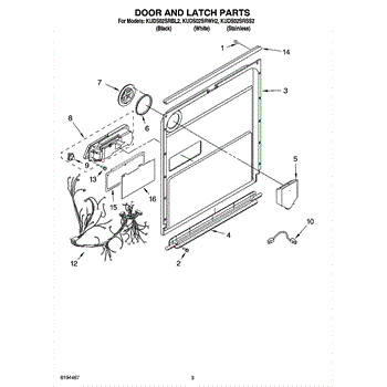 Parts for Kitchenaid KUDS02SRSS2: 03 - Door And Latch Parts