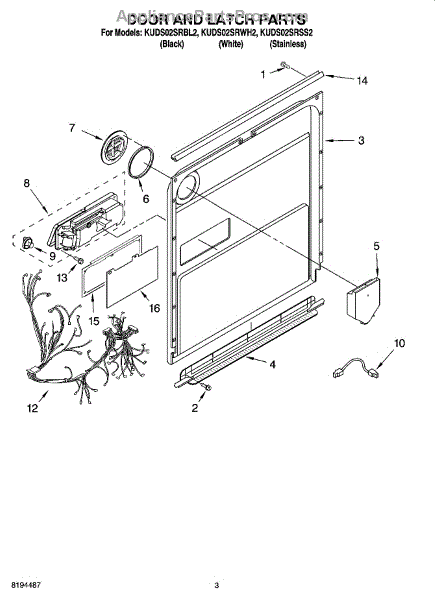 Parts for Kitchenaid KUDS02SRWH2: 03 - Door And Latch Parts