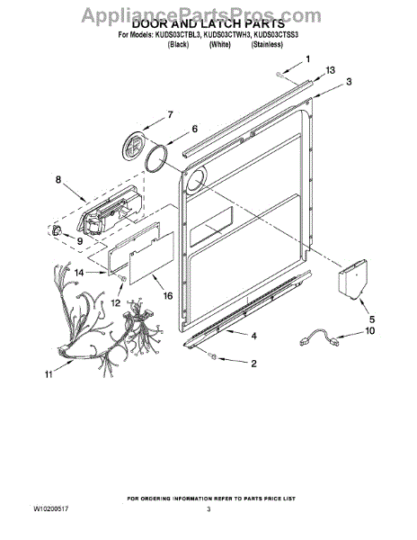 Parts for Kitchenaid KUDS03CTWH3: 03 - Door And Latch Parts