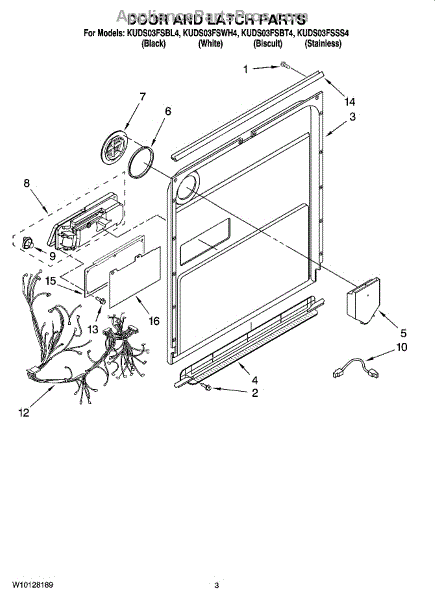 Parts for Kitchenaid KUDS03FSWH4: 03 - Door And Latch Parts