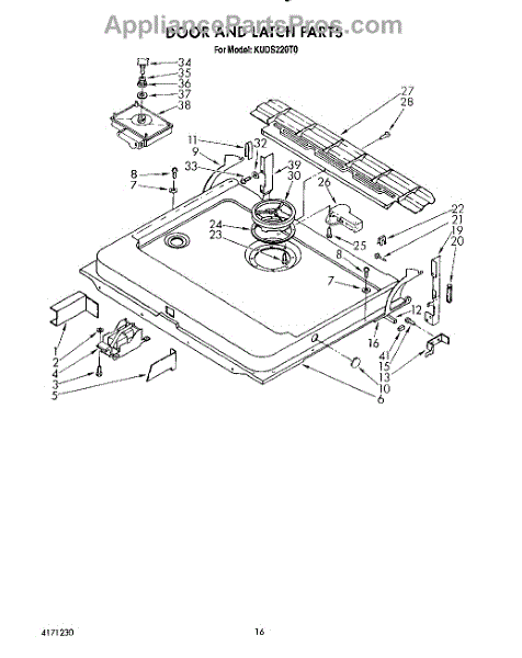 Parts for Kitchenaid KUDS220T0: 13 - Door And Latch Parts
