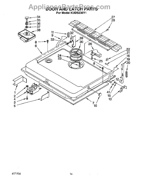 Parts for Kitchenaid KUDS230Y1: 12 - Door And Latch Parts