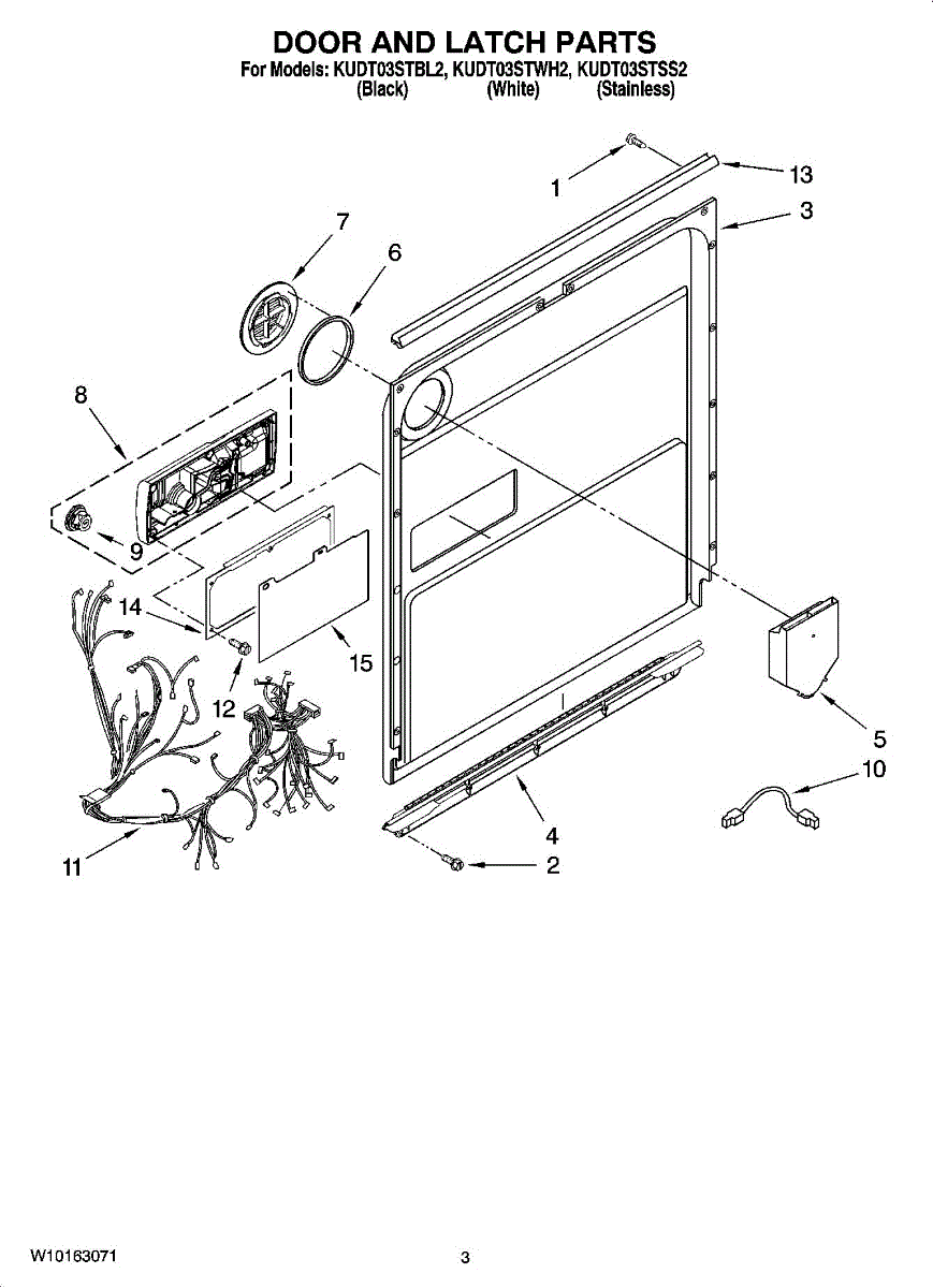 Parts for Kitchenaid KUDT03STWH2: 03 - Door And Latch Parts