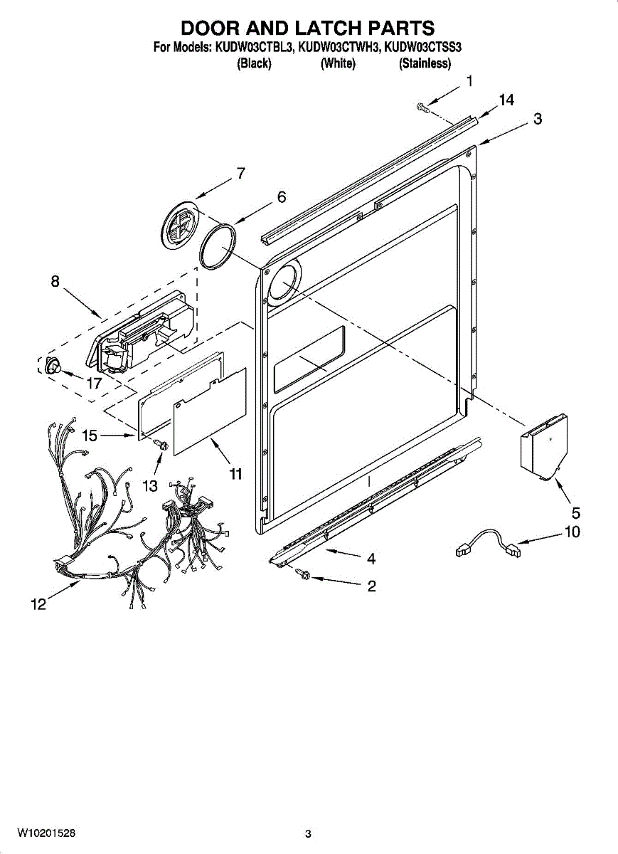 If your detergent dispenser is loose or falling off, this bracket secures it to the door panel. Moderate DIY repair requiring door disassembly.