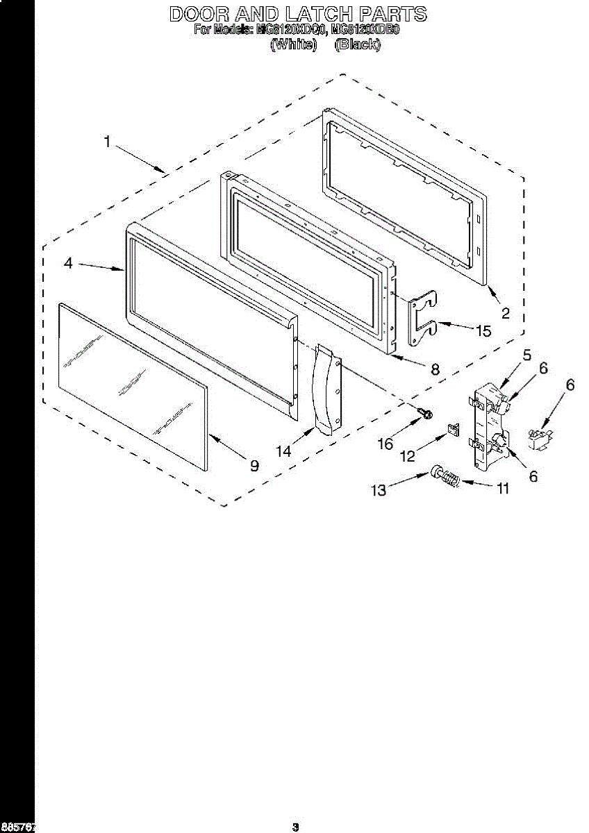 Parts for Whirlpool MG8120XDB0: 03 - Door And Latch Parts