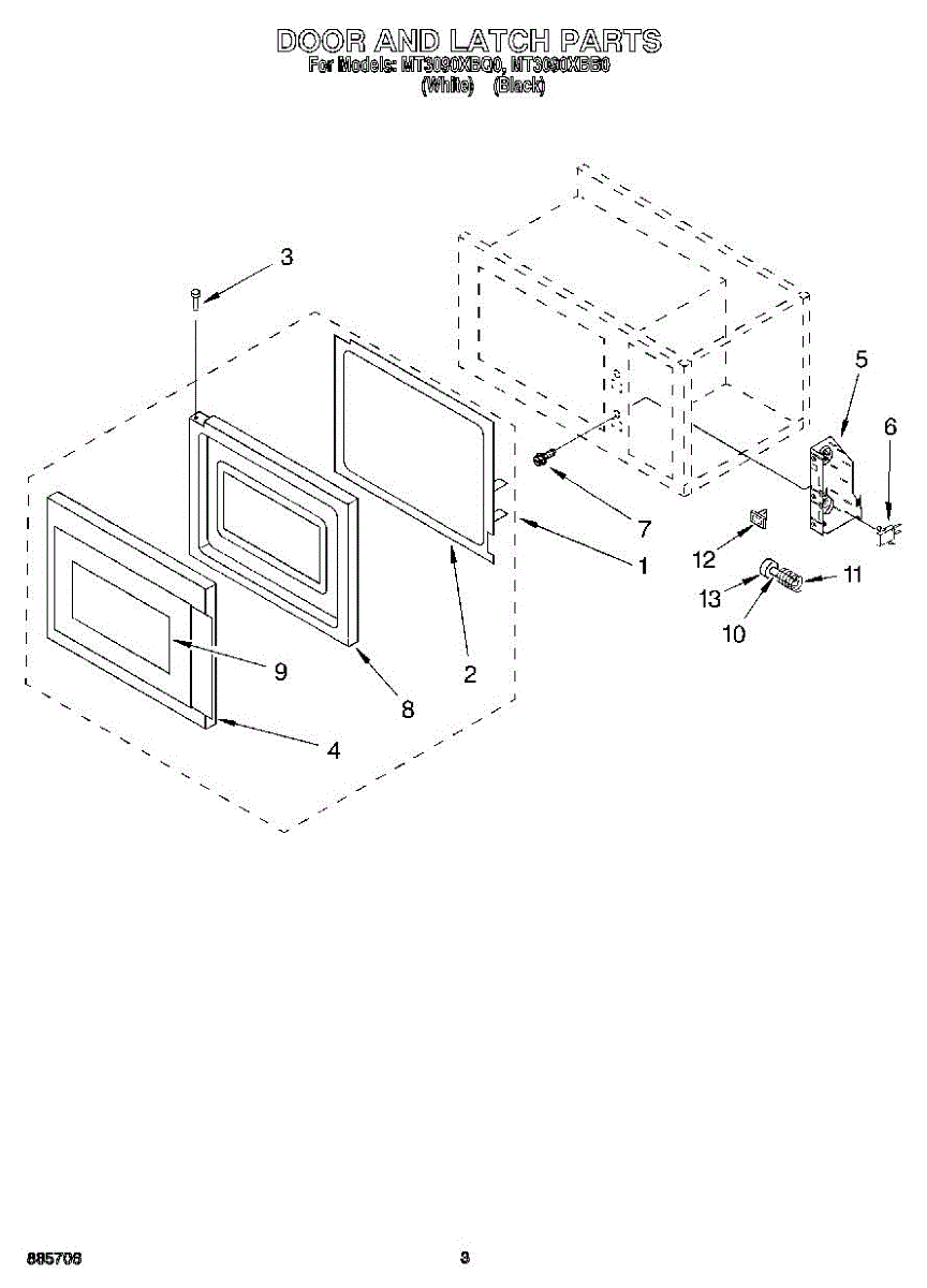 Parts for Whirlpool MT3090XBB0: 03 - Door And Latch Parts