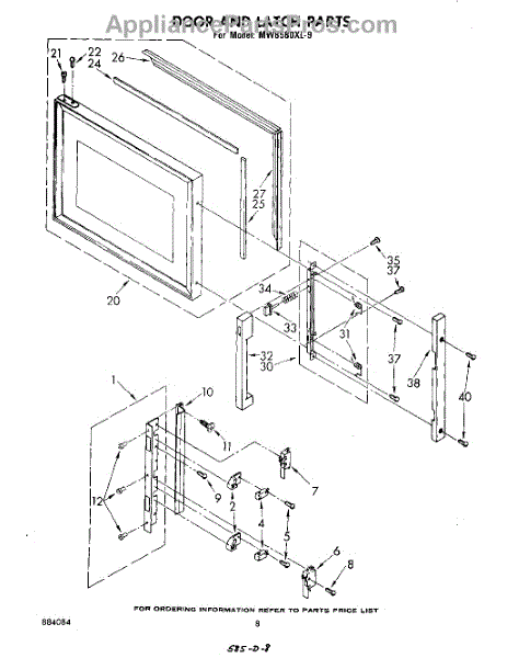 Parts for Whirlpool MW8580XL9: 05 - Door And Latch Parts