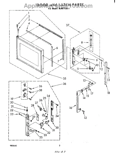 Parts for Whirlpool RJM71001: 02 - Door And Latch Parts
