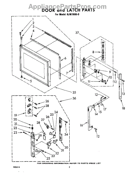 Parts for Whirlpool RJM76000: 02 - Door And Latch Parts
